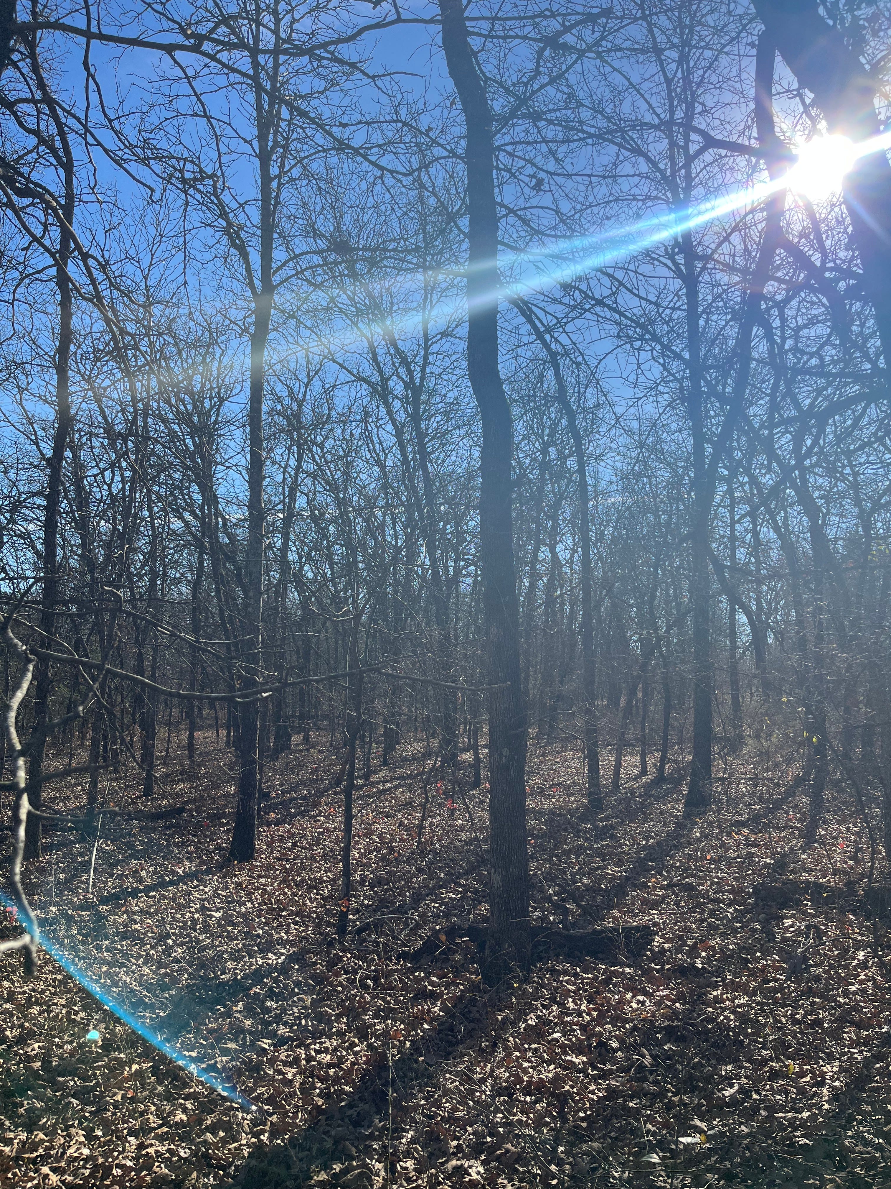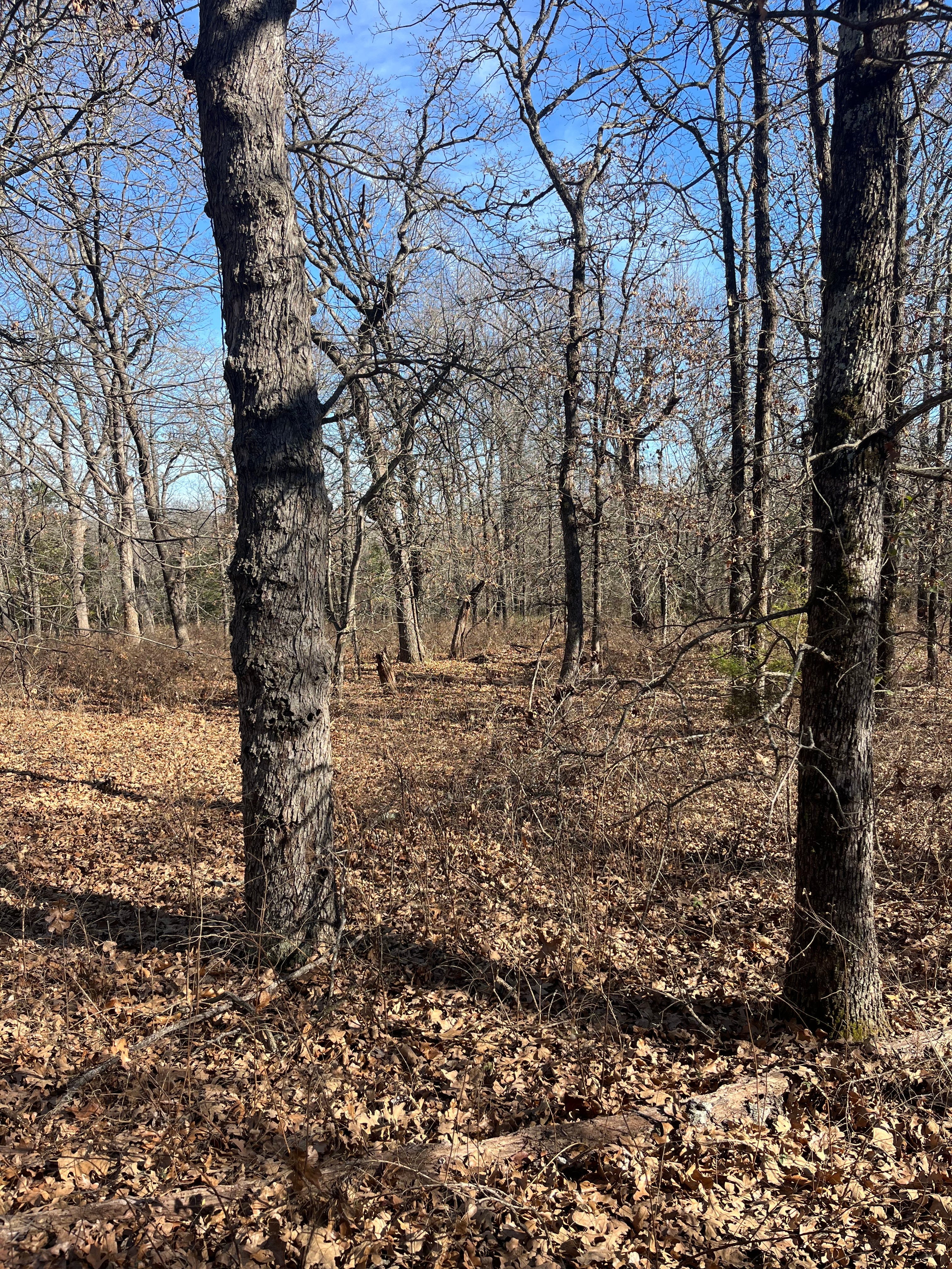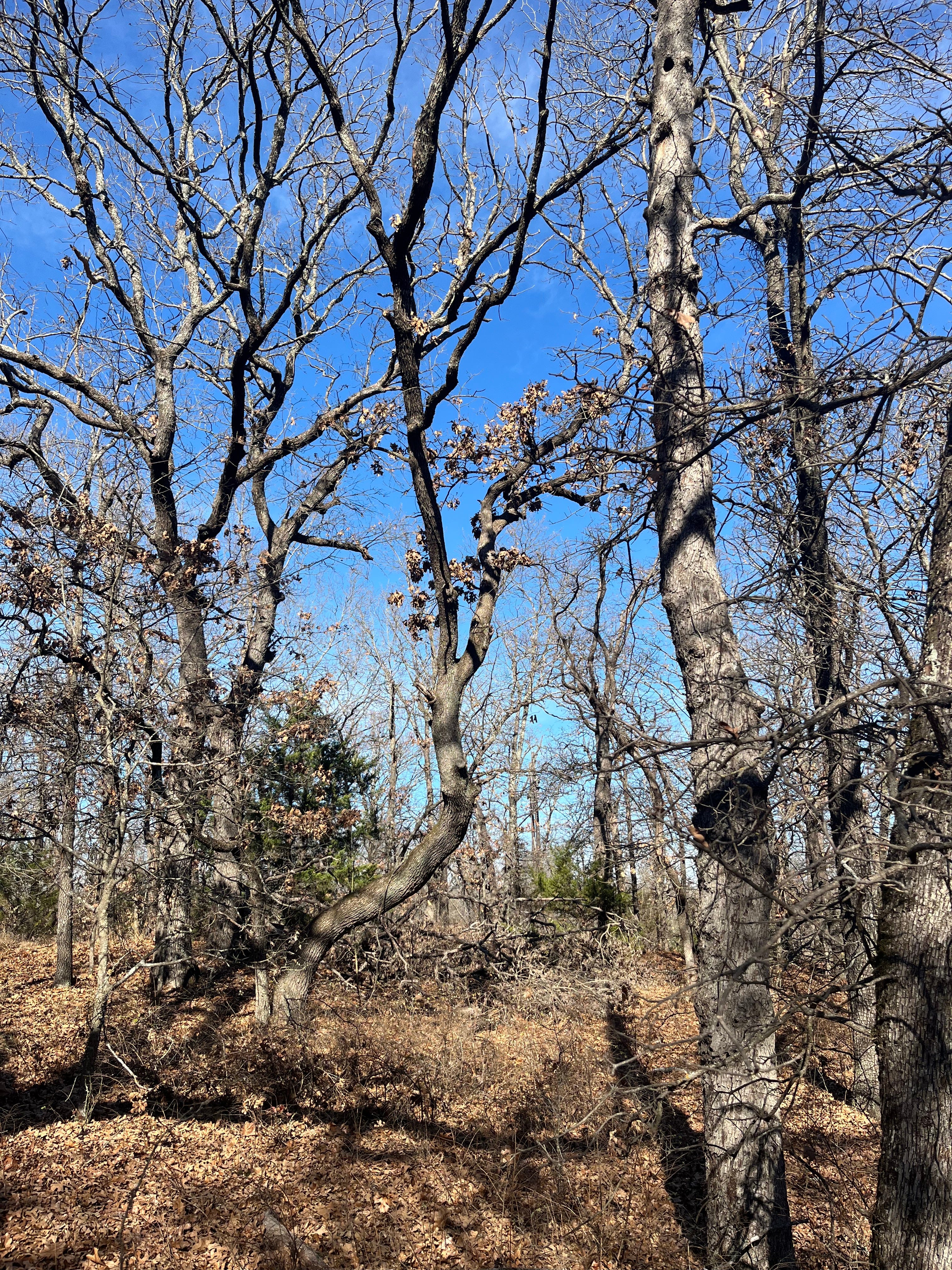 It didn’t grow straight up like the others. It couldn’t. It sits on the side of a hill, and at some point—early, I imagine—the world leaned on it differently than it leaned on the rest.
